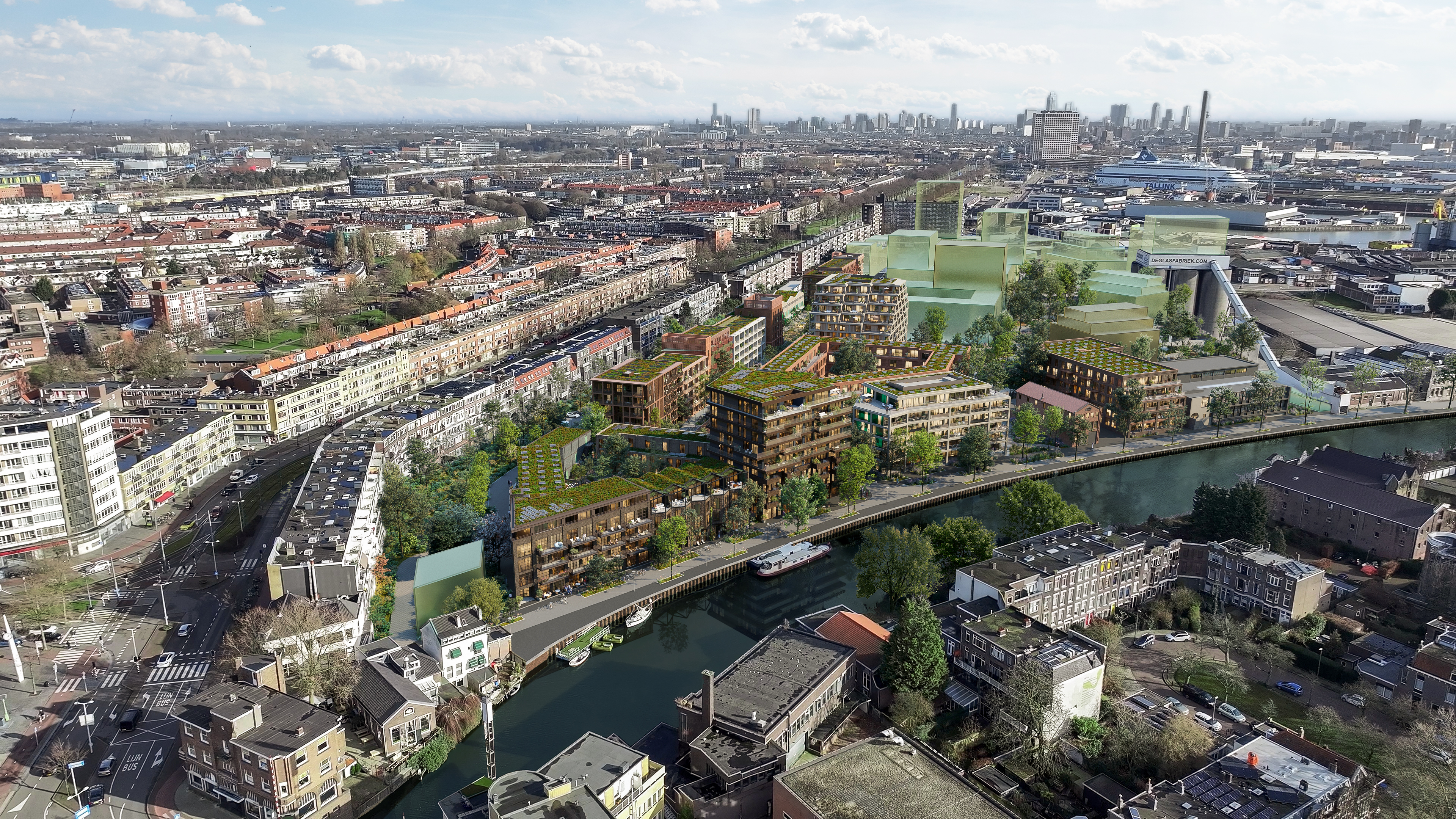Het nieuwe hoofdstuk van De Glasfabriek heet KAFT. Beschut en tegelijk open, in verbinding met het centrum van Schiedam en het westen van Rotterdam. Het ontwerp van KAFT is geschreven voor de moderne stadsbewoner. Met als hoofdpersonen; starters die een eerste eigen plek zoeken en mensen die in een stedelijke omgeving de ruimte willen vinden voor hun plannen. Hier schrijf je als bewoner je eigen verhaal. Over samenleven en je eigen ding doen. Op een plek waar stad en groen elkaar omarmen.