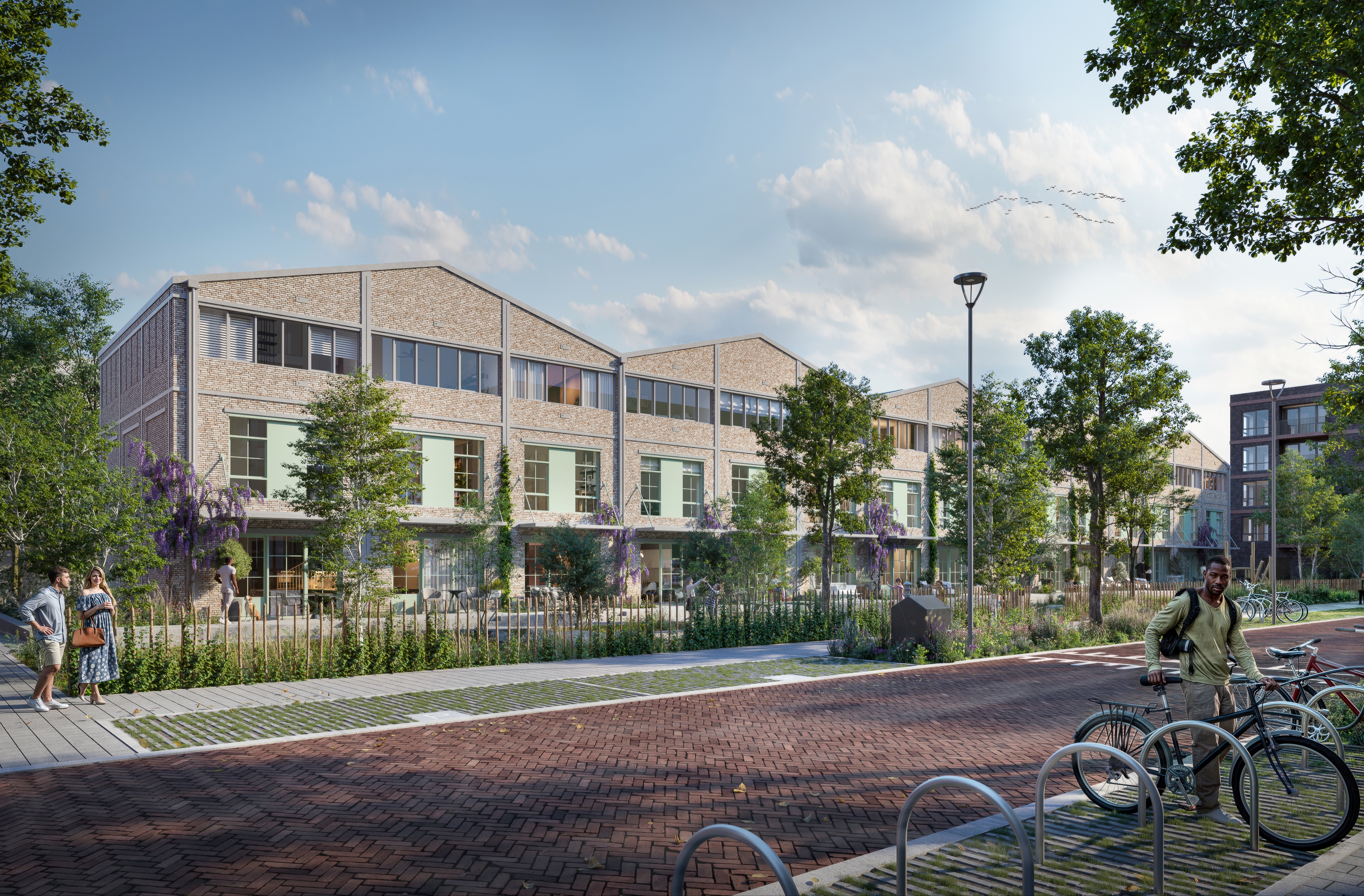 15 Eengezinswoningen voor mensen die in de stad de ruimte zoeken voor hun plannen. Met een karaktervolle architectuur geïnspireerd op de loodsen die er ooit stonden en een diepe tuin waar je heerlijk in de zon kan zitten schrijven.